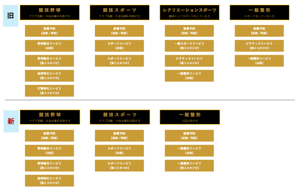 ・一般整形リハビリ/一般スポーツリハビリ/ピラティスリハビリ → 一般リハビリ に統合